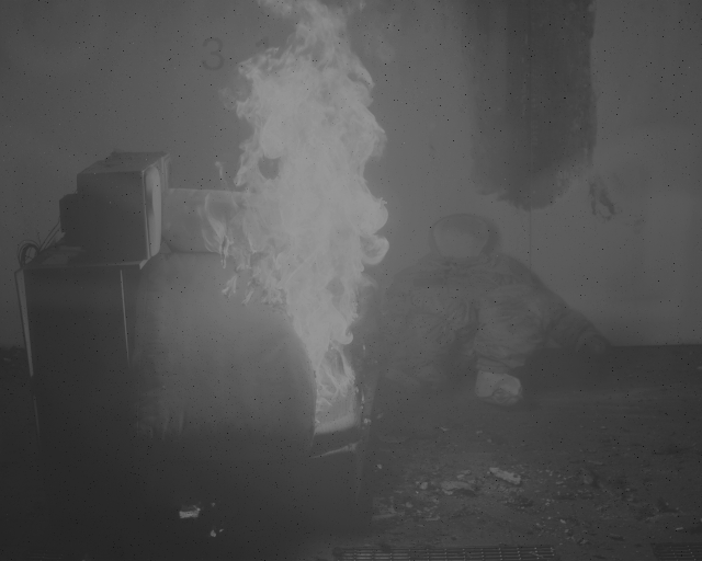 The results showcase brilliantly Emberion camera’s capabilities to see through smoke even when the flames are the only source of light. The other capability Emberion camera showcased was to see the details without saturating the scene by the flames. This is due to the very high dynamic range (120 dB) Emberion sensors built into cameras have. Also wavelengths above 1450 nm were shown as most effective way to penetrate the smoky conditions. When reviewing the images pay attention to the circled numbers on the wall as well as the other details visible in the images.