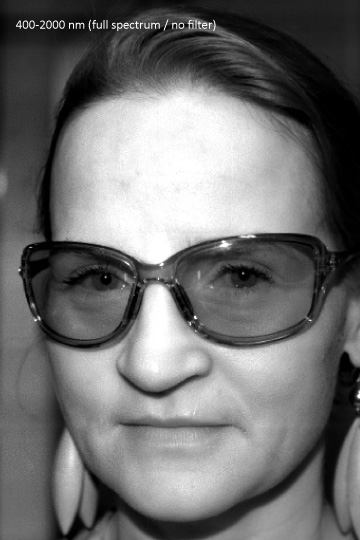The images show that using 1920nm narrowband pass filter and halogen lamps the VS20 can be used to detect moisture absorption. It shows water is very strongly absorbed in that region and can be used for identifying water ingress , food quality, moisture in wood and paper (pulp).